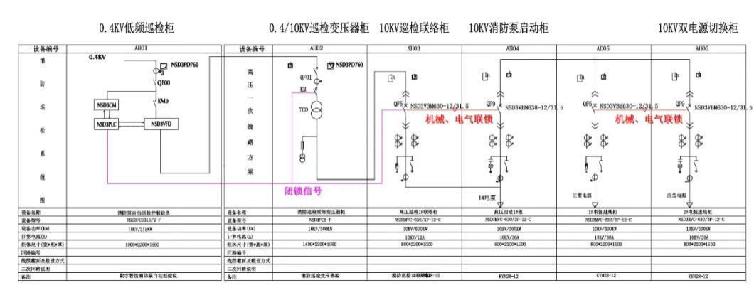 高压巡检联络柜、高压消防泵启动柜满足10kV开关柜生产规范要求,具备“五防联锁”功能;