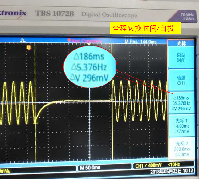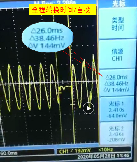 测定从主电源被监测到偏差的瞬间起至主触头闭合备用电源为止的时间(含机构动作时间),不包括特意引入(控制器)的延时。