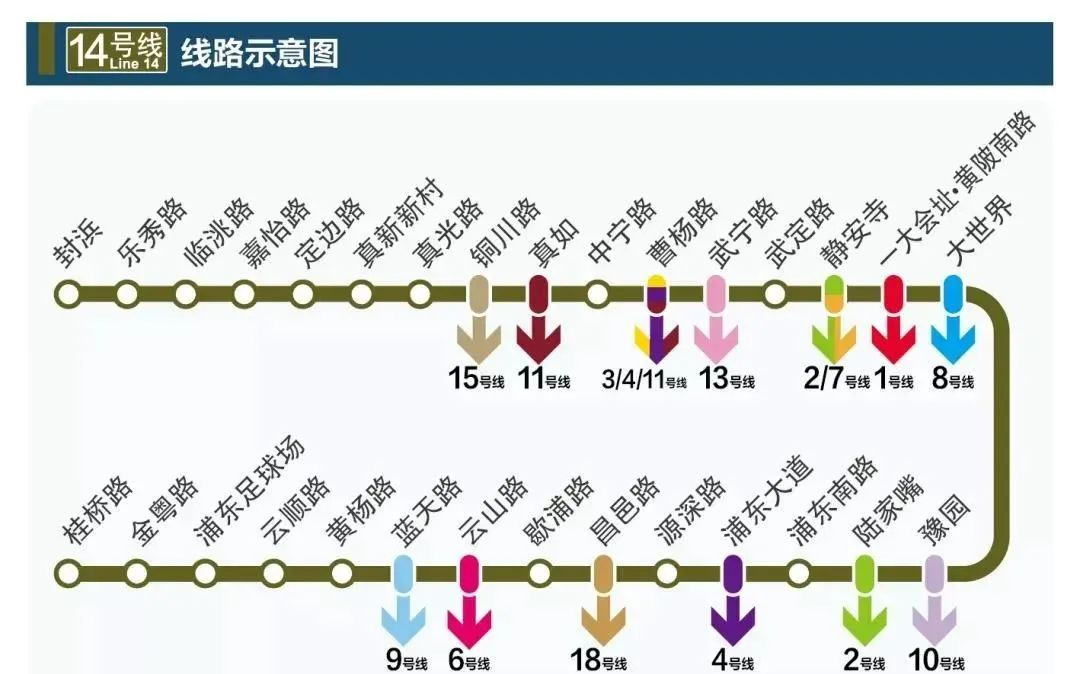 14号线运营里程38公里,沿线经过嘉定区、普陀区、静安区、黄浦区、浦东新区。开通运营初期,14号线全线常态运营时间为5:30-23:37。